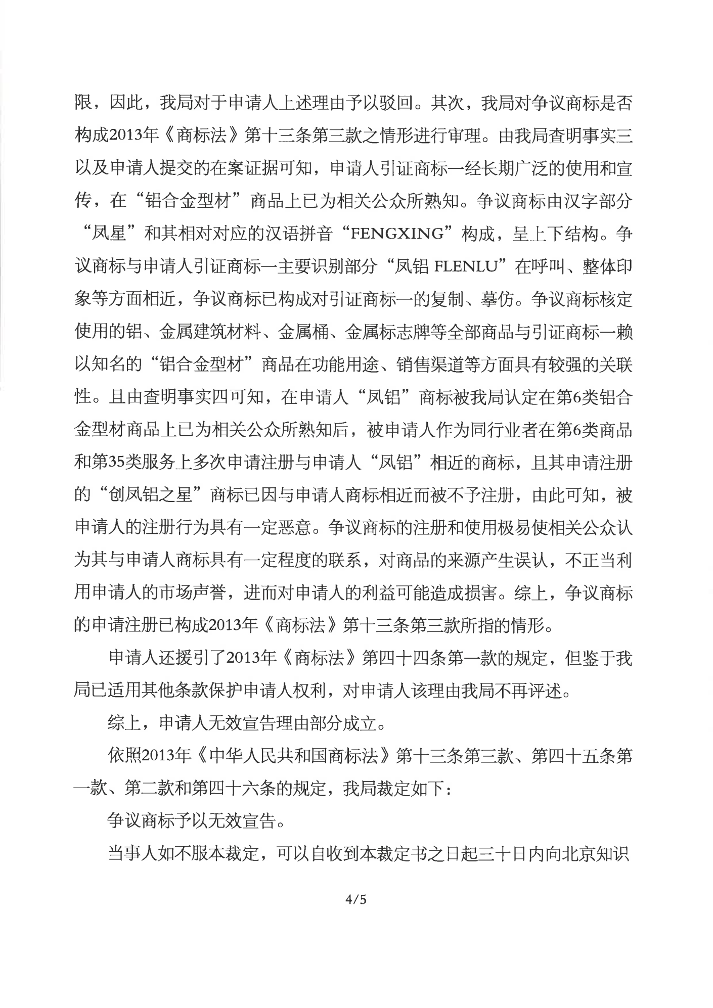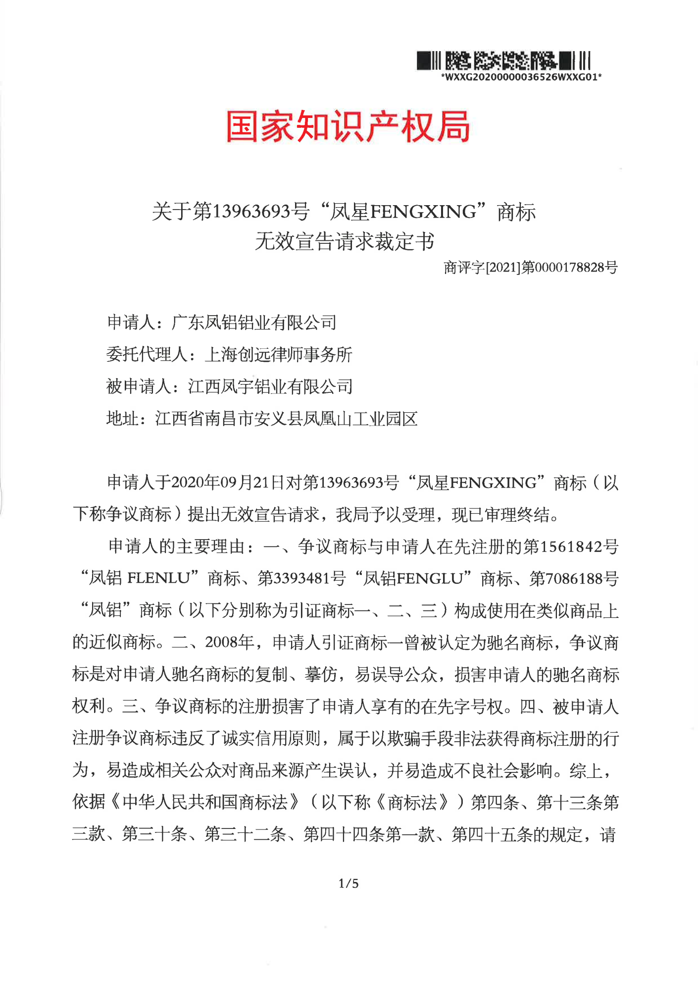 吴忠辉知队 | 国家知识产权局:“凤星”商标无效