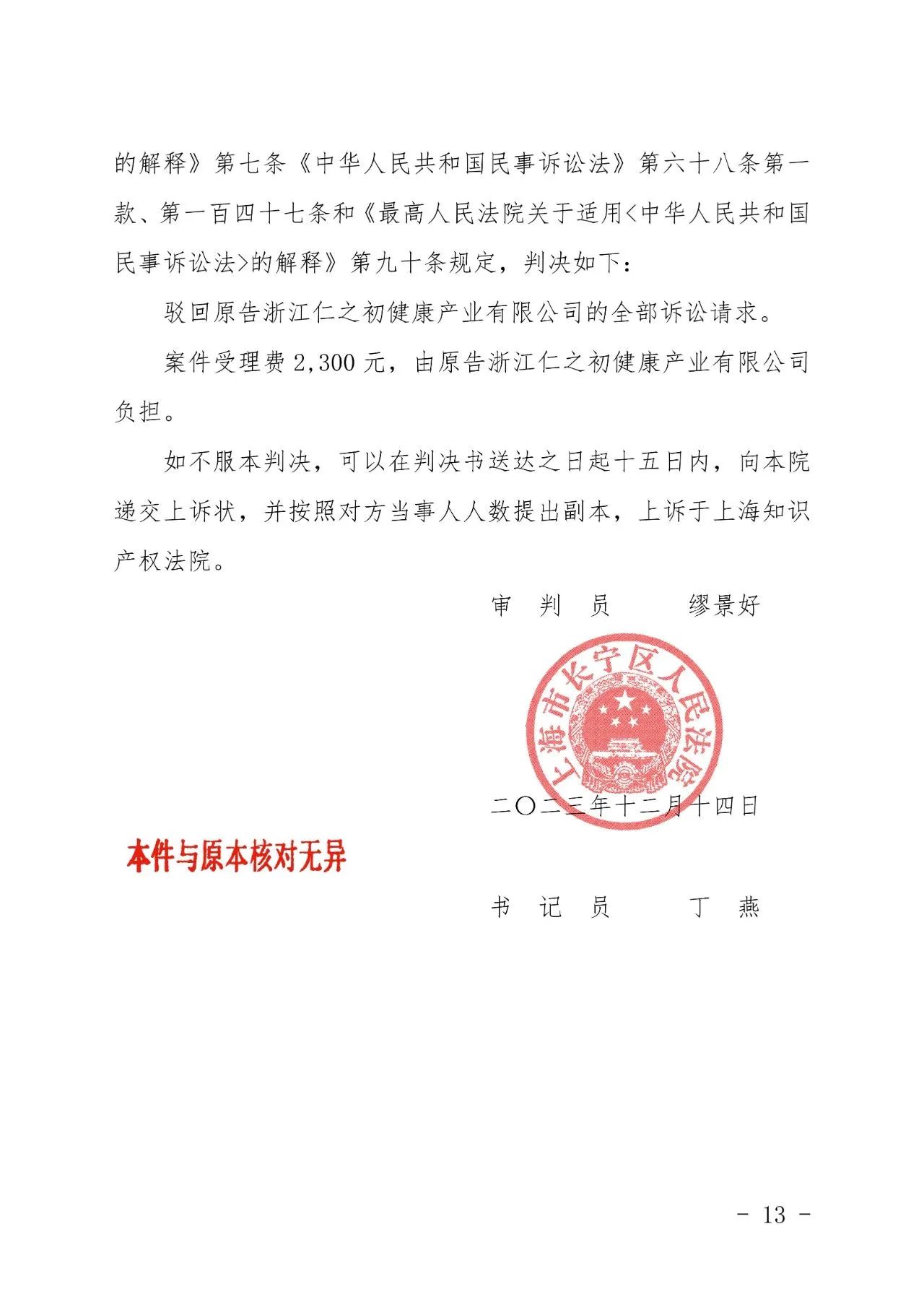 吴忠辉知胜诉佳讯 | “仁之初健康”著作权及不正当竞争纠纷案,法院:驳回全部诉讼请求!
